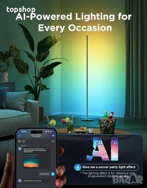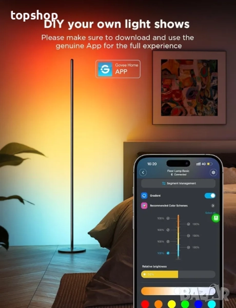 Интелигентно управление: Управлявайте вашата LED лампа с прости гласови команди чрез Alexa и Google Assistant. Приложението Govee Home също така улеснява наслаждаването на множество динамични сцени като „Весела“, „Романтична“ и проектирайте декорациите за вашата всекидневна или спалня. Официалната връзка за изтегляне на приложението е предоставена на опаковката под формата на QR код. Моля, уверете се, че изтегляте и използвате оригиналното приложение за пълноценно изживяване.