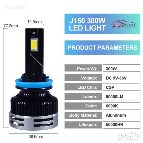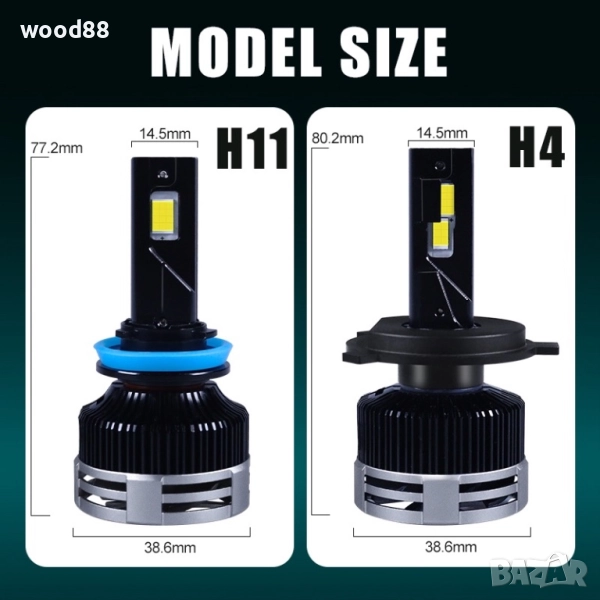 ЛЕД ДИОДНИ КРУШКИ 300W -50000 лумена (реални) h1,h7,h4,h11,h3,h8