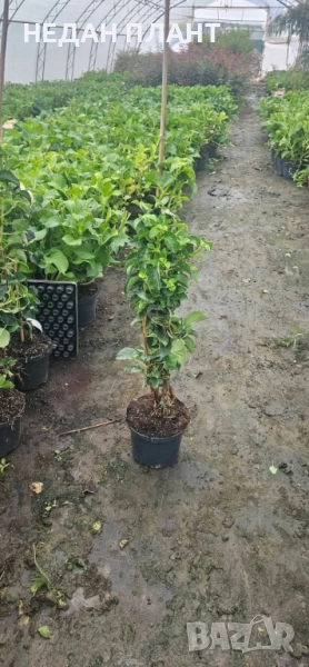 Hydrangea anomaly petiolaris е катерещ храст с ниска поддръжка, идеален за полусенчести места. В средата на лятото ражда големи бели цветя на хортензия в стил дантелена шапка, който могат почти напълно да покрият стъблата. Стъблата се придържат към стените със странични корени.