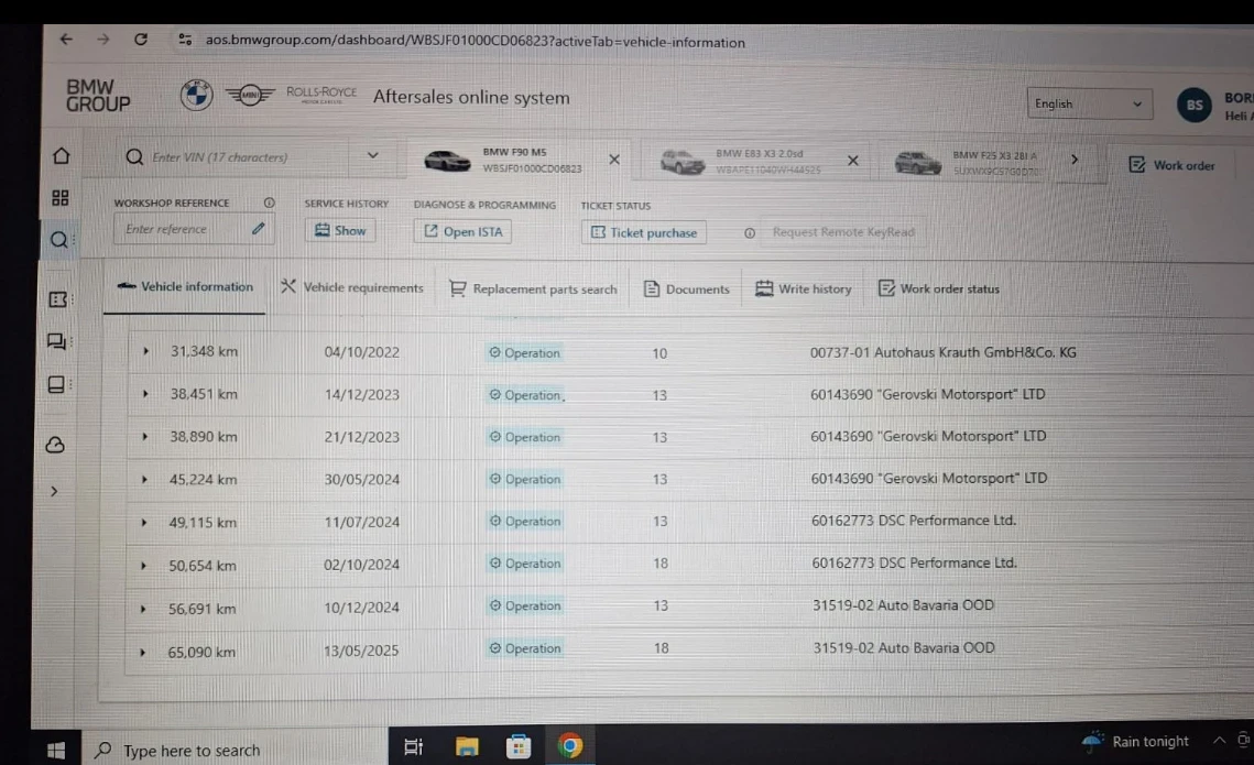 Възможен лизинг със и без доказване на доходи! Минимална първоначална лизингова вноска 25% срок на изплащане до 48м. ! Пълна сервизна история, обслужвана на 8000км. ! Допълнително оборудване: Активна вентилация на предните седалки Пакет Ambient Air BMW Display Key DAB тунер (цифрово радио приемане) Система за подпомагане на водача: BMW Gesture Control Система за подпомагане на водача: Driving Assistant Plus Интериор: Керамични апликации за контролните елементи Алуминиеви джанти, предни/задни: 9. 5x20 / 10. 5x20 (Double-spoke style 706 M, Jet Black) M Пакет за водача M мултифункционални седалки, предни Пакет Parking Assistant Plus Пакет за пушачи Комплект за ремонт на гуми (Mobility Pack) Сервизна система: Apple CarPlay Information (подготвена) Система за безопасност Active Protection Слънцезащитни стъкла (тонирани задни) Захранващ контакт (12V връзка) в централната конзола и багажника (4 отделения) Допълнителни характеристики: LED трети стоп Адаптивно окачване M-Technic Аеродинамичен пакет M-Technic Въздушна възглавница от страната на пътника с деактивиране Въздушна възглавница от страната на водача/пътника Активни облегалки за глава Амбиентно осветление Външни характеристики: Shadow Line с висок гланц (разширен обхват) Електрически външни огледала, регулируеми и отопляеми Външно огледало с функция за реагиране при заден ход, дясно Пакет външни огледала LED мигачи Спирачна система: M Sport спирачки (боядисани спирачни апарати) Спирачен асистент Регенерация на спирачната енергия (регенеративна спирачна система) Competition Антрацитен таван (BMW Individual) Блокировки на колелата (блокировки на колелата) Възможност за товарене на товарни места (заден централен подлакътник) Динамична стоп светлина Динамичен контрол на сцеплението (DTC) Прагове на вратите с надпис M-Technic Аптечка/Аптечка за първа помощ Система за подпомагане на водача: Система за предупреждение за челен сблъсък с функция за спиране Система за подпомагане на водача: Асистент за внимание Система за подпомагане на водача: Контрол на шофирането Система за подпомагане на водача: Асистент за дълги светлини Система за подпомагане на водача: Асистент за паркиране Система за подпомагане на водача: Предупреждение за пешеходци с функция за спиране Спусната окачване Електрически стъкла отпред и отзад Централна конзола, обърната назад Bluetooth система за свободни ръце с USB/аудио интерфейс Пасивна система за защита на пешеходците Велурени стелки за пода Автоматична скоростна кутия със Steptronic и Drivelogic (8-степенна) Поставки за чаши отпред и отзад Head-up дисплей Автоматично управление на задната врата LED задни светлини Заден спойлер (M-Technic) Интериор: Алуминиево-карбонови интериорни елементи с акцентна лента Вътрешно огледало с автоматично затъмняване Инструментален дисплей Многофункционален Инструментален панел Sensatec Isofix крепежни елементи за детско столче на задната седалка Каросерия: 4 врати 4-зонов автоматичен климатик с автоматична рециркулация на въздуха Въздушна възглавница за коленете на водача Система за въздушни възглавници за главата на задните седалки Система за въздушни възглавници за главата на предните седалки Лумбална опора на предните лява и дясна седалка Електрически регулируема кормилна колона (волан) и въздушна възглавница за водача Механично регулируема кормилна колона (волан) с възможност за регулиране на обхвата на фаровете (автоматичен) Металик боя Заден централен подлакътник Двиг