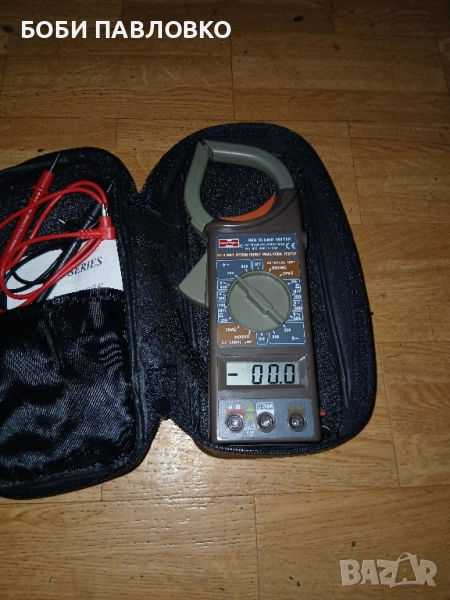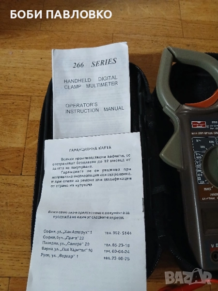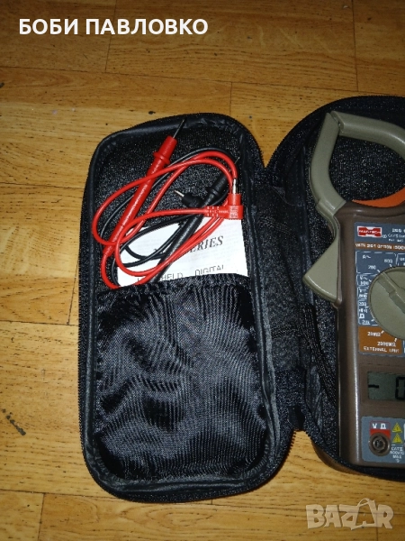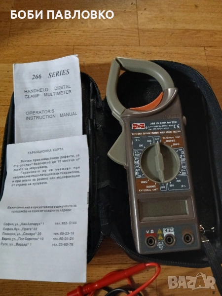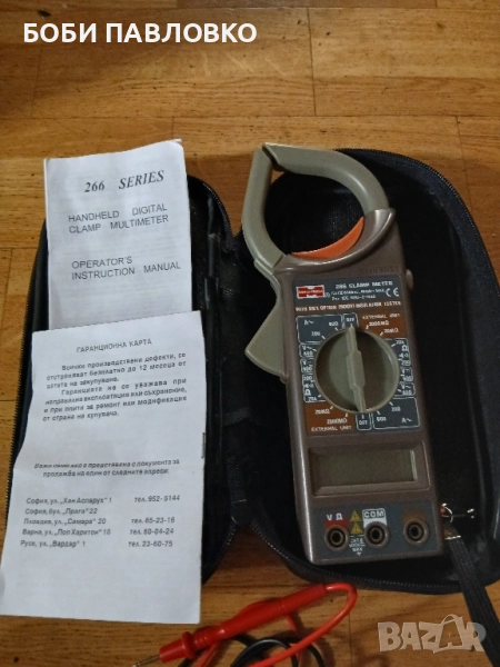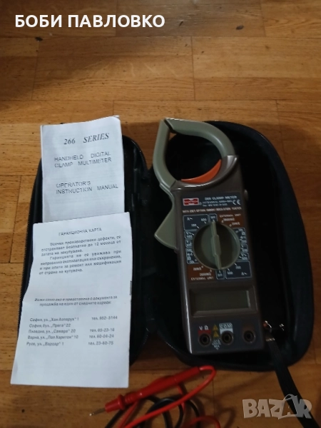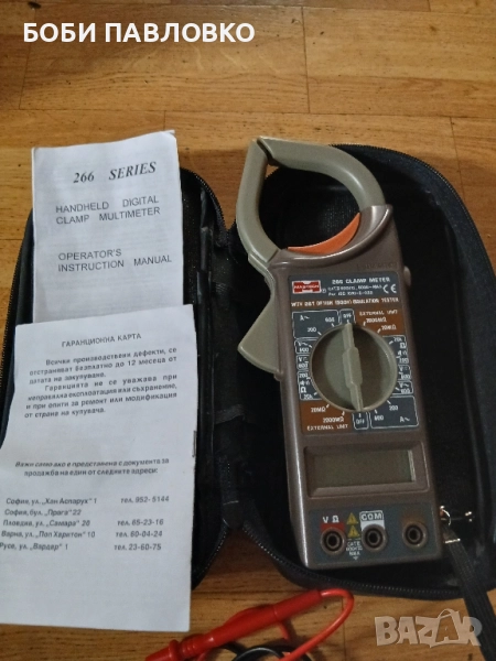 Чисто нов мултисет с клещи оргинални кабели батерия инструкция за употреба и гаранциона карта в кожен калъф.