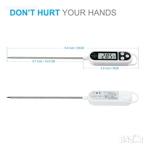 Термометърът със сонда 5,7 инча / 14,5 см е достатъчно дълъг за лесна употреба и гарантира, че няма да си изгорите пръстите.