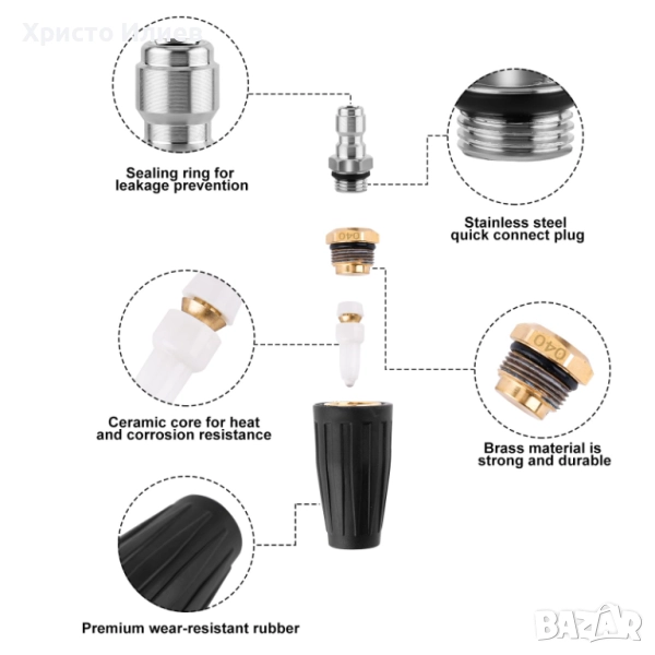 Тази мощна дюза е проектирана да улесни трудните задачи за почистване около вашата градина и дом. С максимално налягане от 4000 PSI, тя без усилие се справя с мръсотия и замърсявания от бетон, тухли и други повърхности. Въртящата се турбо дюза осигурява ефикасно почистване, а бързите конектори от неръждаема стомана предлагат лесно закрепване и издръжливост.