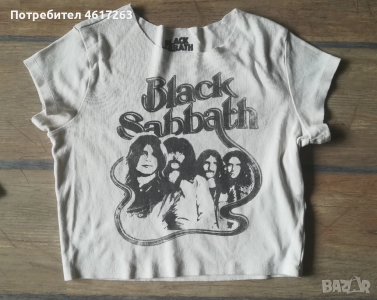 1) Къса тениска с графика Black Sabbath. Материята е 100% памук - меко памучно трико с щампа - 4 лв