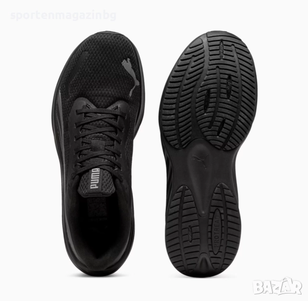 Външна част изработена от лека, мрежеста част за добра опора и естествена гъвкавост, която осигурява перфектно дишане по време на движение а синтетичните панели на повърхността увеличават здравината на маратонките. Областа, където са връзките е подсилена с TPU за дълготрайност. Допълнително подсилени в областта на петата и пръстите (отвътре). Надпис Puma върху езика, лого в предната и задна част. Класическата опорна шарка PUMA Formstrip добавя стилна нотка към тези практични маратонки. Нисък профил за по-голяма свобода при движение. Вътрешната текстилна част заедно със стелката Soft Foam + осигуряват невероятна мекота и комфорт с всяка крачка. PROFOAMLITE - изключително лека EVA подметка, проектирана да омекотява приземяването и да стимулира всяка стъпка. ProTread - гумена подметка с разделени зони, която гарантира максимално сцепление и издръжливост.