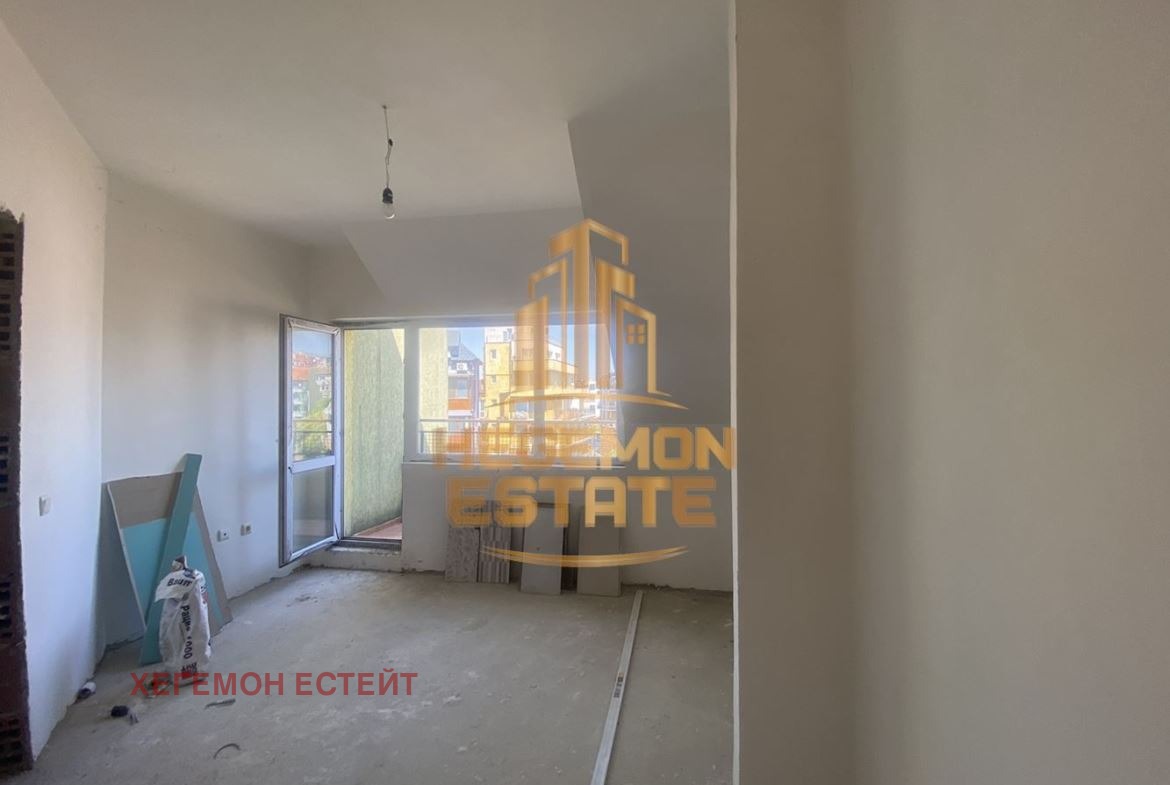 Разпределение: входно антре, всекидневна с кухненски тракт (36кв.м) с излаз на слънчева тераса, спалня с излаз към просторна тераса, отделно мокро помещение и санитарен възел.