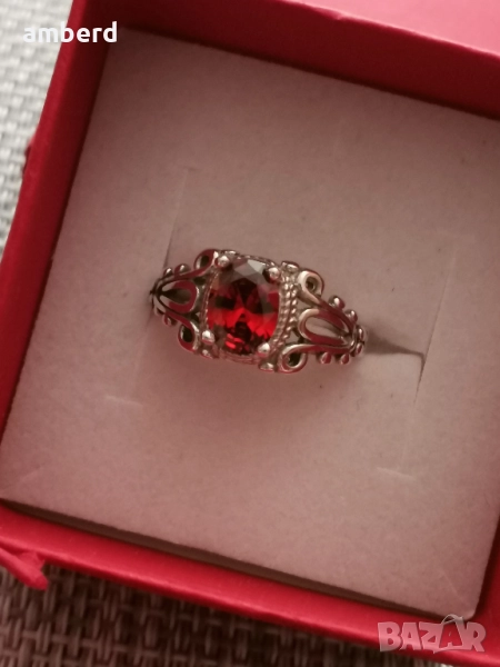 Страхотен пръстен, изработен от сребро проба 925 и червен цирконий.