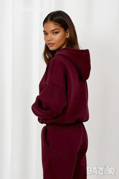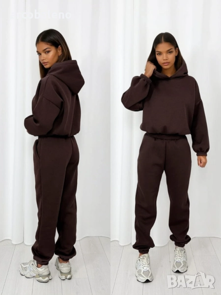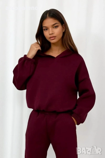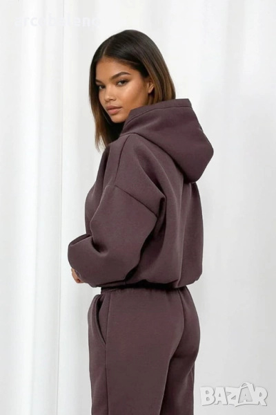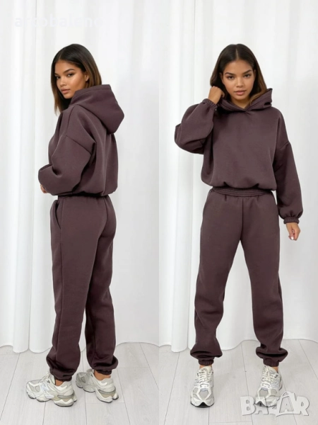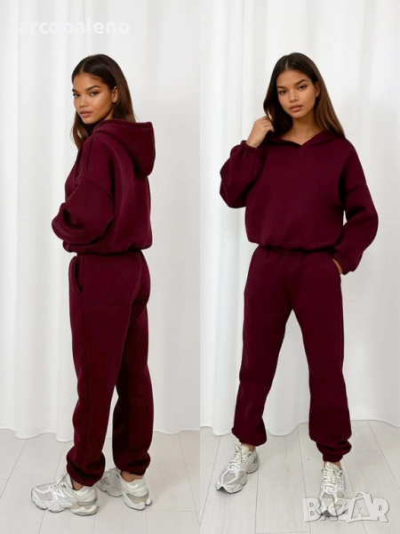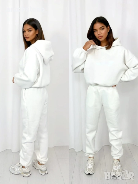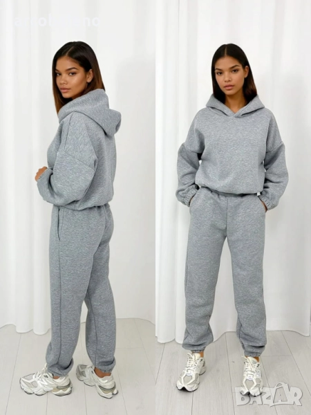Комплект от основен спортен екип – панталон с ластик на талията и голям суичър с качулка. Класика, която отива на всичко!