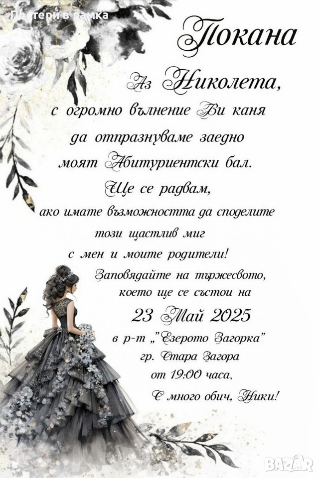 Покана за абитуриентски бал , снимка 1 - Покани - 51986878 Покана за абитуриентски бал , снимка 2 - Покани - 51986878 Покана за абитуриентски бал , снимка 3 - Покани - 51986878 Покана за абитуриентски бал , снимка 4 - Покани - 51986878 Покана за абитуриентски бал , снимка 5 - Покани - 51986878 Покана за абитуриентски бал , снимка 6 - Покани - 51986878 Покана за абитуриентски бал , снимка 7 - Покани - 51986878 Покана за абитуриентски бал , снимка 8 - Покани - 51986878 Покана за абитуриентски бал , снимка 9 - Покани - 51986878 Покана за абитуриентски бал , снимка 10 - Покани - 51986878 1/10