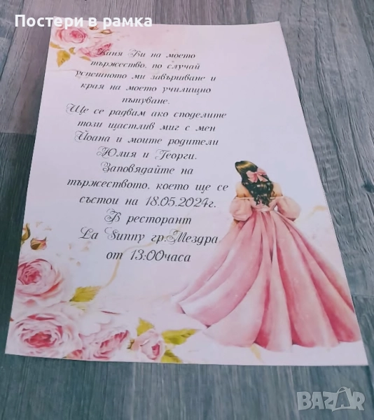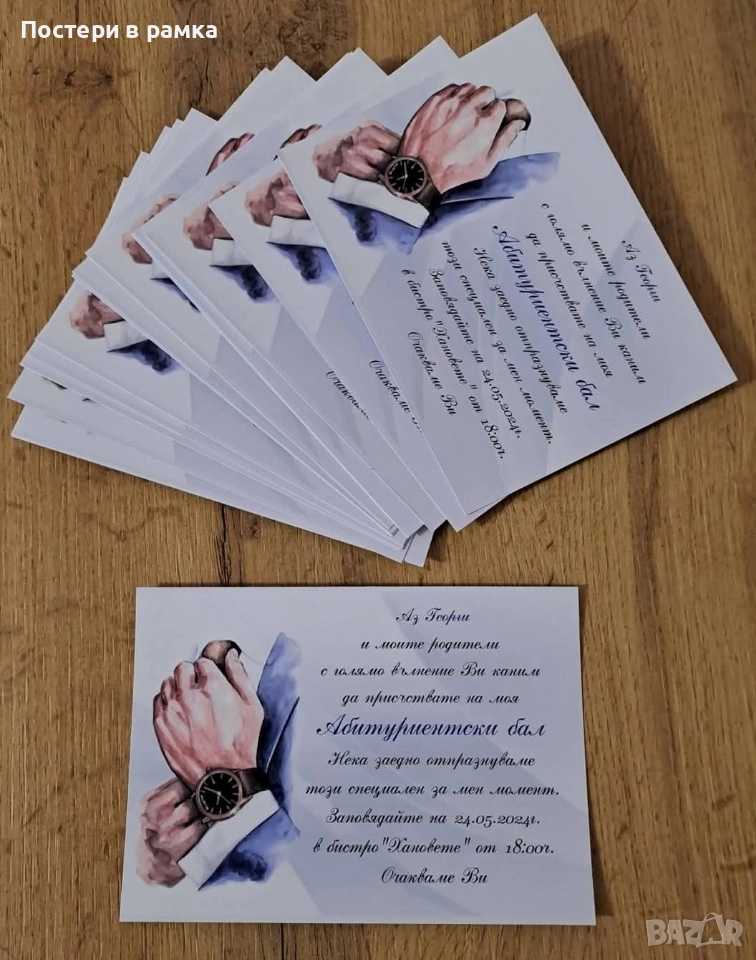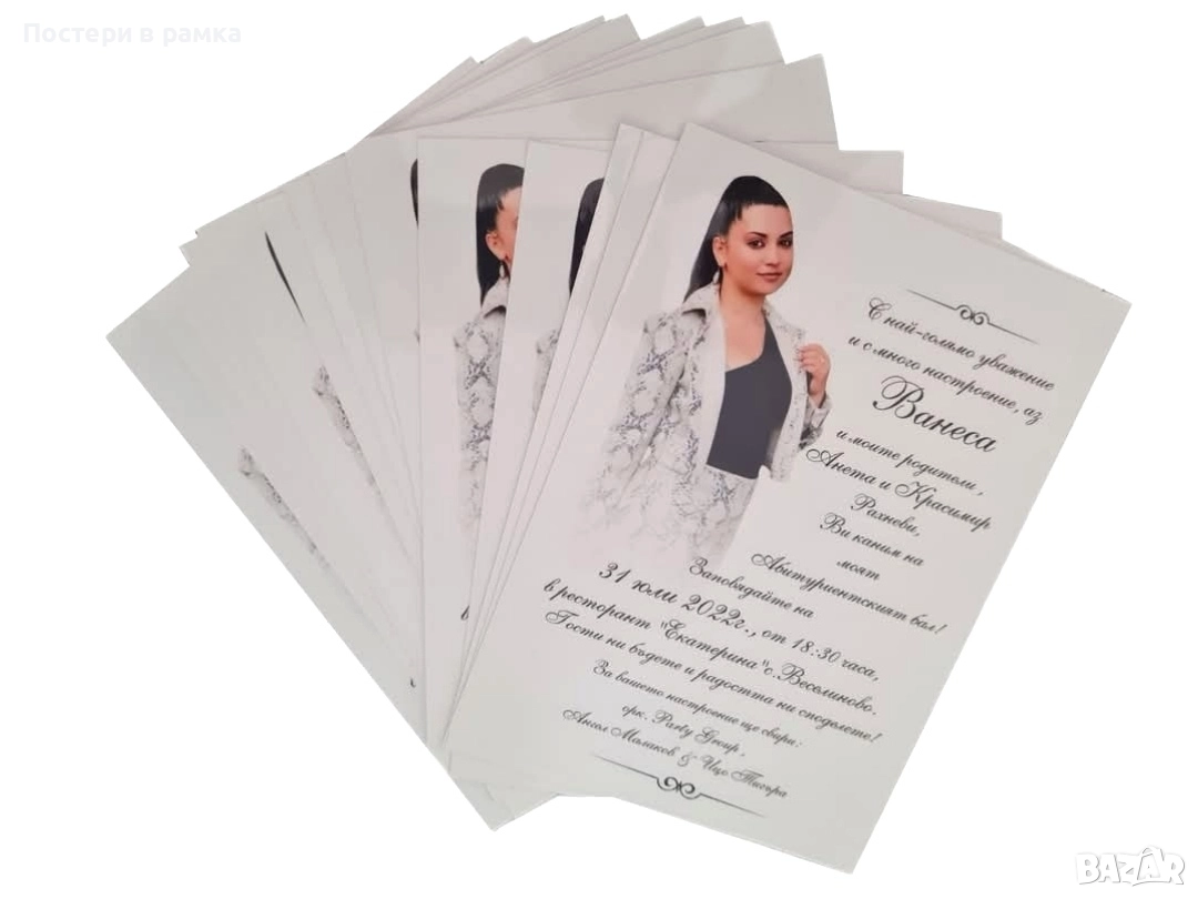 Размер на поканите 10х15см. – гланцирана фотокартон.
