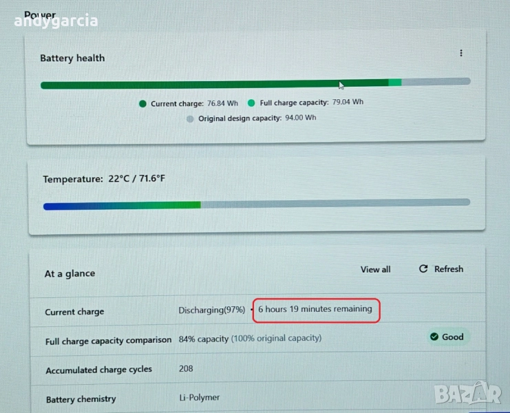 Батерия: 6-клетъчна, литиево-полимерна батерия, 79 Wh