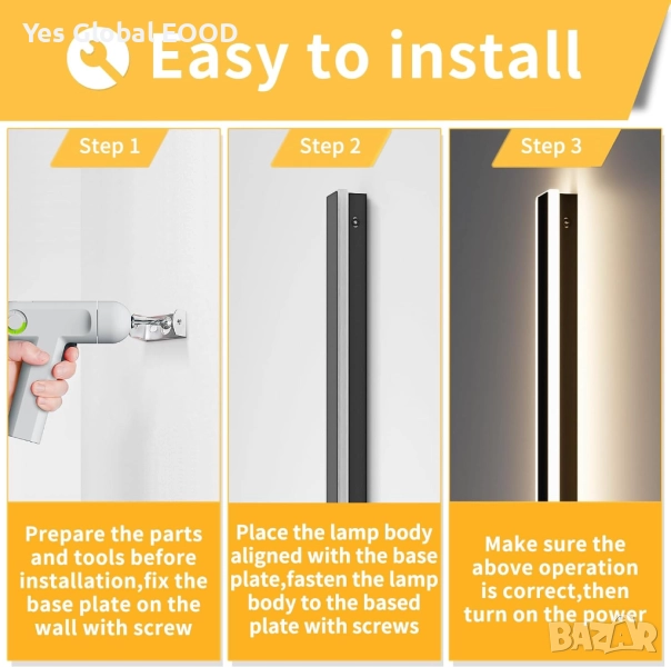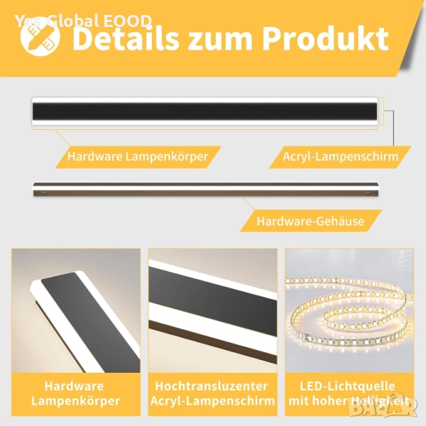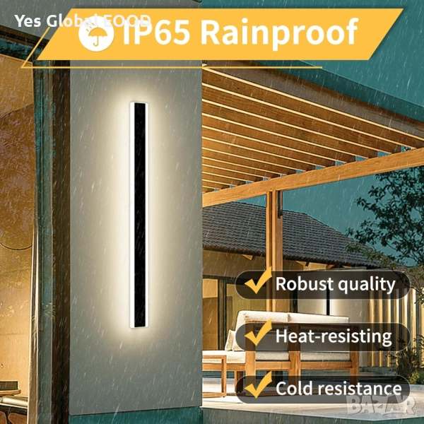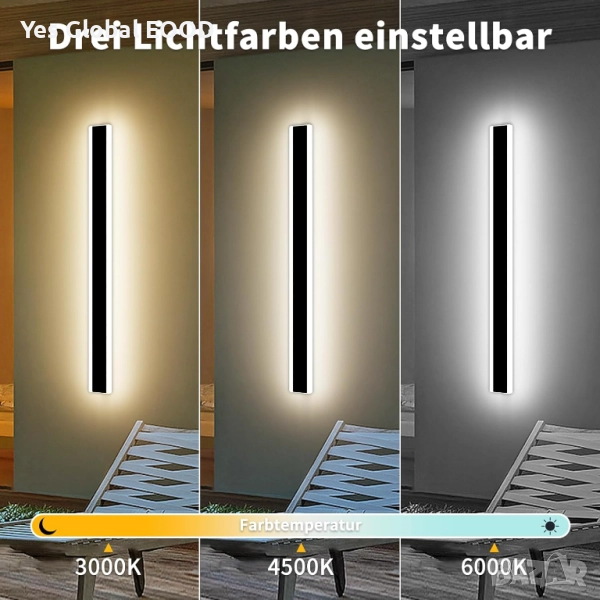 Модерният външен стенен аплик с дължина 80 см съчетава стилен минималистичен дизайн и функционалност. Изработен от устойчиви материали с матов акрилен дифузер, той осигурява равномерна и мека светлина. Предлага три цвята на осветлението – топло (3000K), неутрално (4500K) и студено бяло (6000K), подходящи за различни атмосфери. С водоустойчив клас IP65, апликът е идеален за външни пространства като дворове, веранди и фасади.