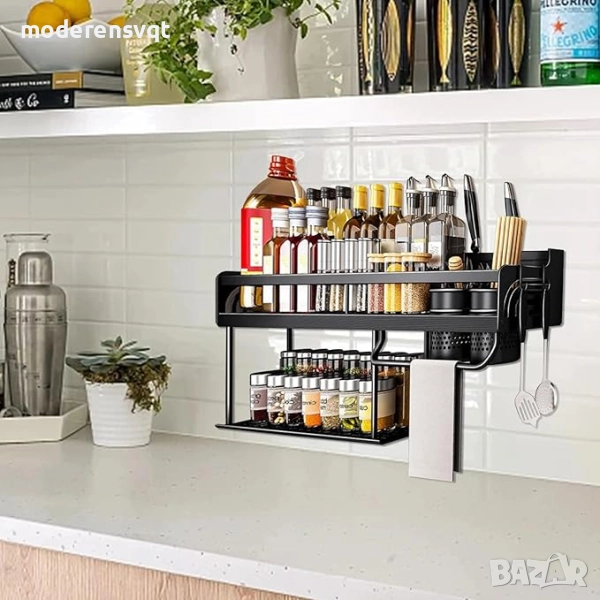 Кухненски органайзер 2 етажа многофункционален рафт за прибори, подправки, кърпи