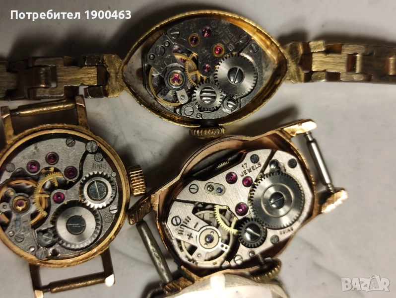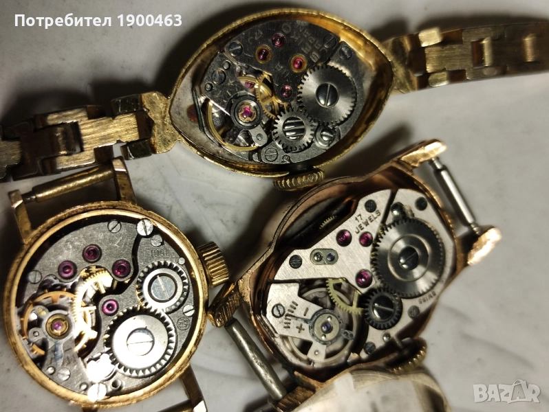 Три броя работещи позлатени механични часовници с ръчно навиване.Японски Сейко, Швейцарски Дамаск.Съветски, СССР Чайка.Дамас с маркировка Plaque G 10.Чайка с маркировка АУ.Сейко без маркировка.