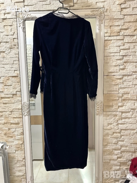 Нова дизайнерска кадифена рокля във тъмно син цвят . Размер s