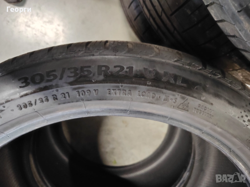 2бр.Continental,305/35/21 , ДОТ 3621, 5.7mm грайфер, цената е за 1бр.Гумите са перфектни, без забележки, проверени са машинно за кривини, балони! Разполагаме с всякакъв размер нова и втора употреба гуми от 14-22 цола за автомобил, джип и бус.