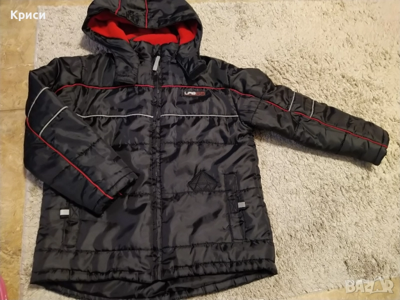 2) детско зимно яке Urban. Размер 7-8 год. Черно яке с червена поларена качулка. Размери: ширина - 46 см, дължина - 54 см. Забележка: отпред до левият джоб и на левият ръкав има нашивка.Снимка: 3, 4 и 5.ЦЕНА: 14лв