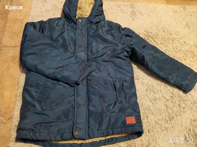3) детско зимно яке - тъмносиньо с динозаври. Размер 7-8 год/ 128. Ширина - 44 см, дължина - 59 см. В отлично състояние, без забележки. Снимка: 6, 7 и 8. ЦЕНА: 23 лв