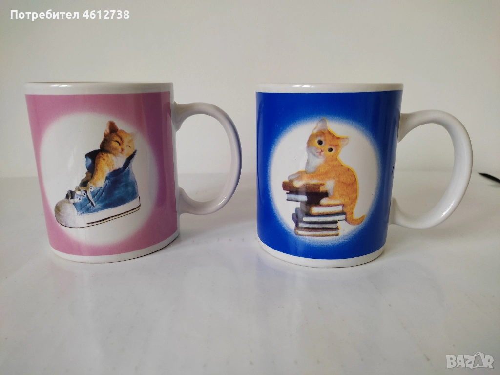 - Нови две чаши с котета – сина и розова, купени от Париж - Цена 1,50 €. за брой.