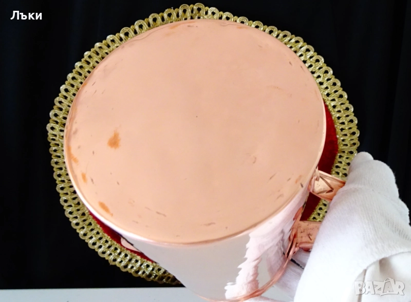 масивна чиста червена мед с ослепителен блясък.Кована безшевно от дебела