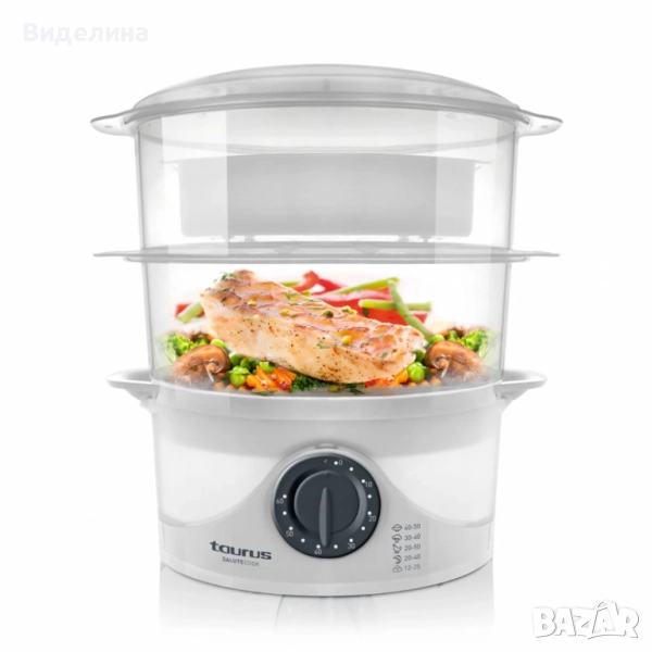 Уред за готвене на пара Taurus Salutecook 800W, 6 л, таймер 60 мин, 2 съда за готвене → Обява 51990143