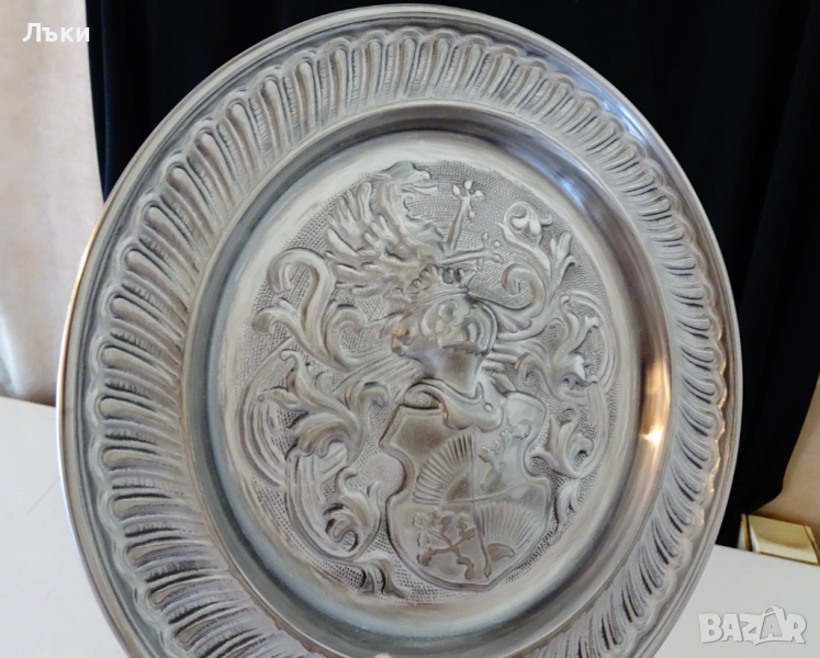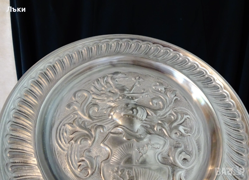 Старинна немска калаена чиния за стена,пано,майсторска ръчна