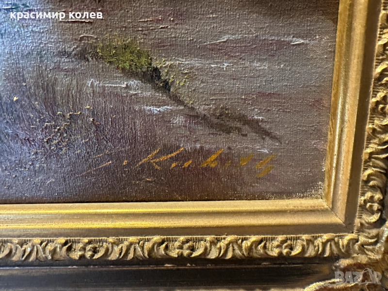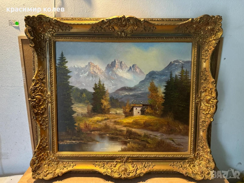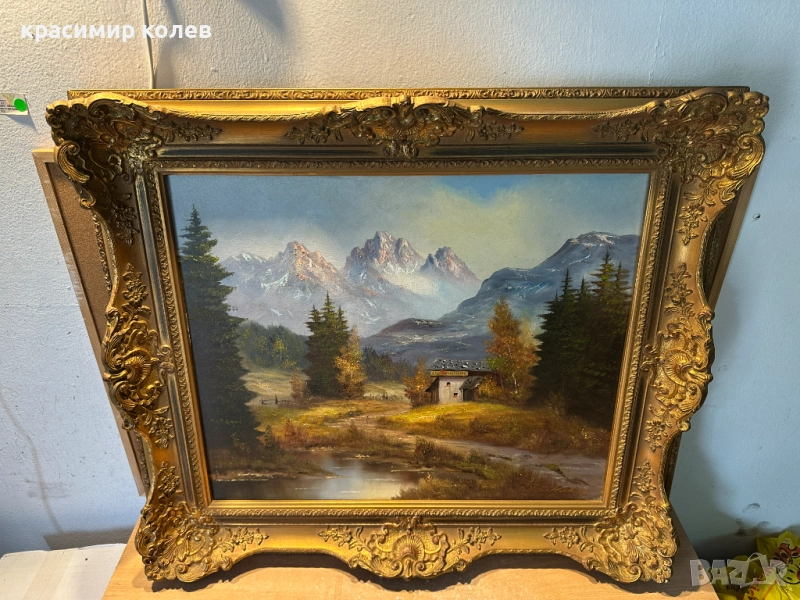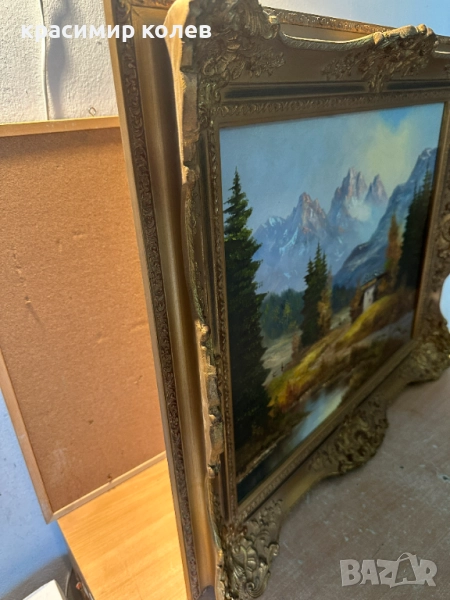 рамката са в отлично сътояние.Рамката е от дърво.Закупена е от Германия.Размери на самата картина са 60х50 см., на рамката са 77,5х69,5 см.