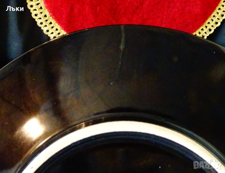 чиния,ръчно рисувана с 24 карата злато.На черен фон са изаборазени златни