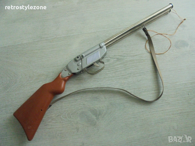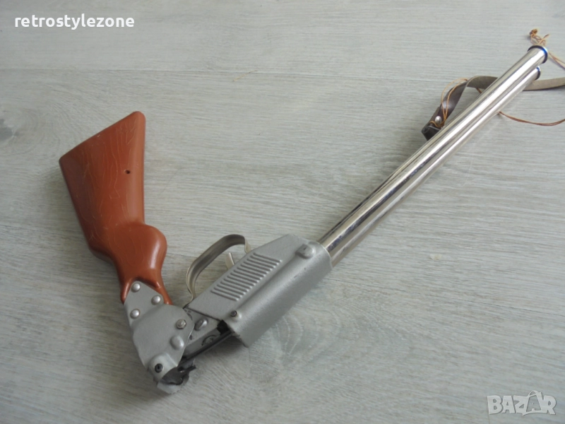Ретро играчка пушка – двуцевка, работеща механично и стреляща с тапички/капачки.