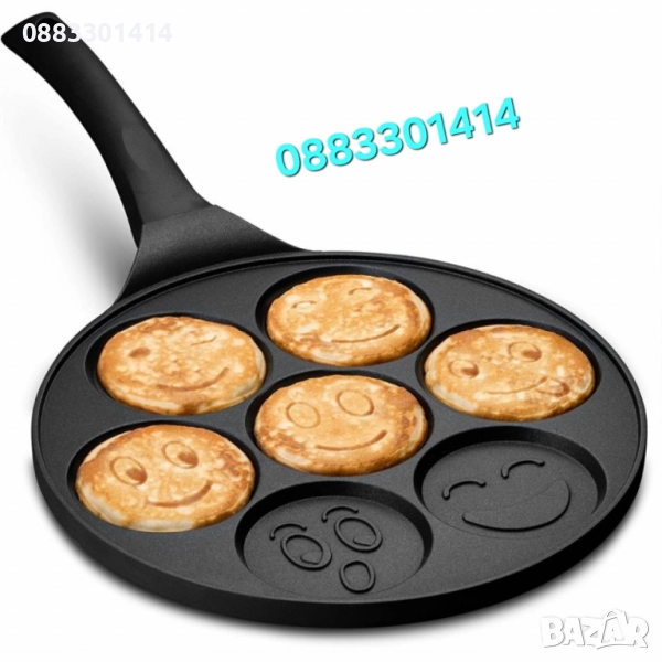 тиган за приготвяне на емоджи палачинки. Изработен от висококачествен материал, с незалепващо покритие за лесно почистване. Идеален за семейни закуски или забавни парти. Панелът с различни емоджи форми ще зарадва малки и големи.