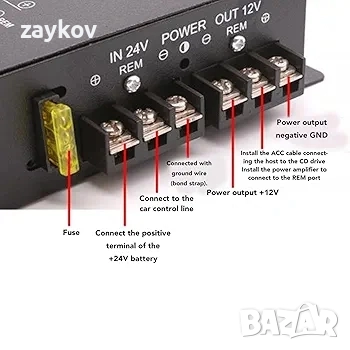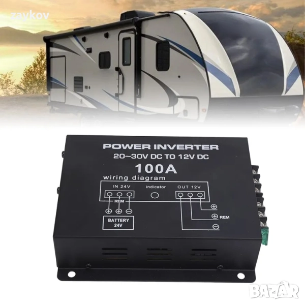Понижаващ напрежението конвертор от 24V към 12V с контрол на температурата за автомобили
