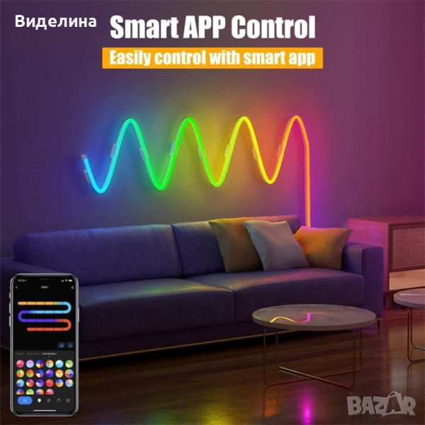 Неонови LED лентови светлини. Водоустойчиво осветление, 4.5 метра лента. Заложете на модерния блясък → Обява 51991504