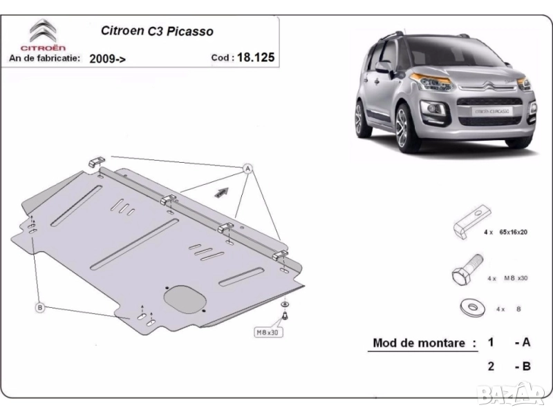 Метална кора под двигател и скоростна кутия Citroen C3 Picasso 2009г – 2016г, снимка 1 - Аксесоари и консумативи - 51991508 Метална кора под двигател и скоростна кутия Citroen C3 Picasso 2009г – 2016г, снимка 2 - Аксесоари и консумативи - 51991508 Метална кора под двигател и скоростна кутия Citroen C3 Picasso 2009г – 2016г, снимка 3 - Аксесоари и консумативи - 51991508 Метална кора под двигател и скоростна кутия Citroen C3 Picasso 2009г – 2016г, снимка 4 - Аксесоари и консумативи - 51991508 1/4