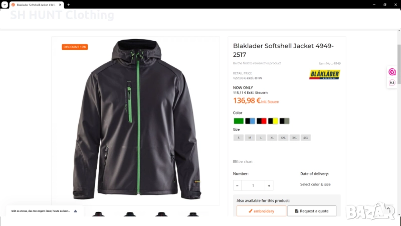 Марка: BLAKLADER Softshell Work Jacket 4949-2517 - работен суичър вятърно устойчив. Използван в отлично състояние.