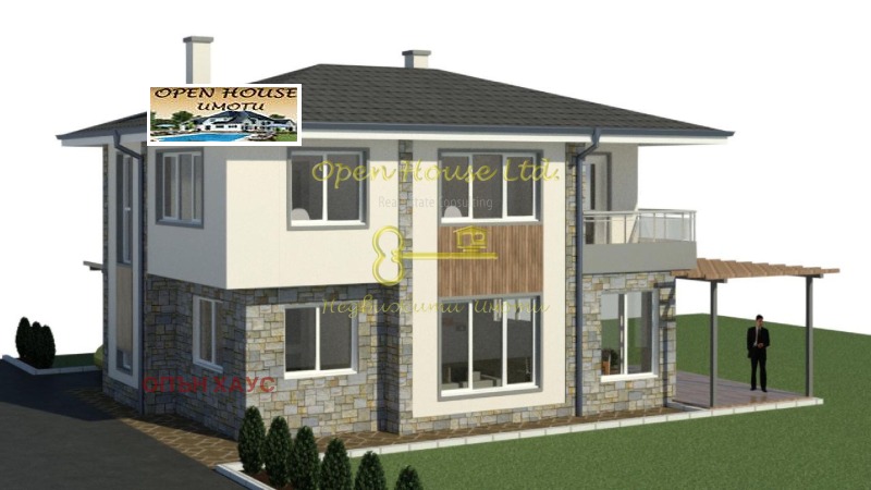 - втори етаж: коридор, детска стая, две спални с общ балкон, едната от които с дрешник и баня-тоалет, перално, дрешник, баня-тоалет и килер.