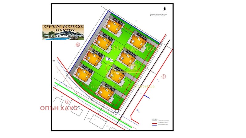 Всяка къща ще е с обособен двор, с две паркоместа, като четири от дворовете ще са със самостоятелен вход от улицата, а останалите четири с общ портал.
