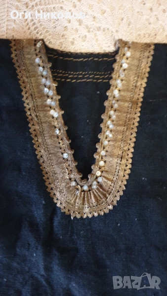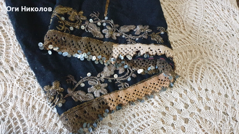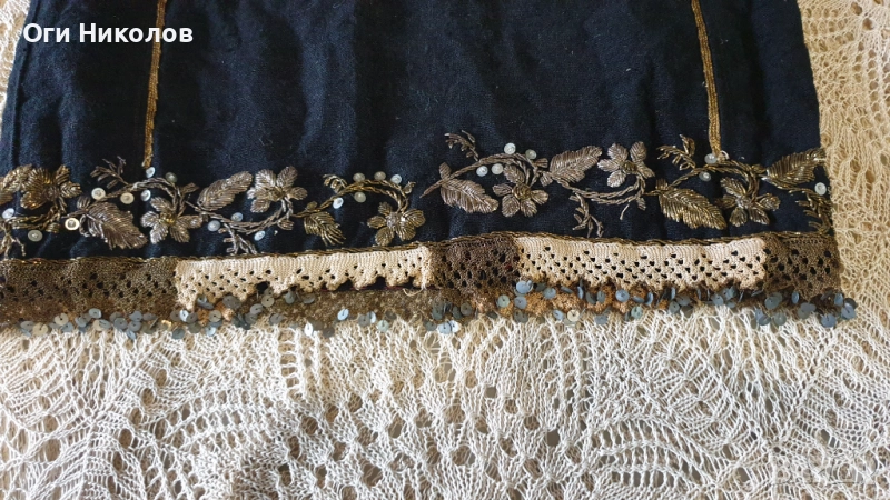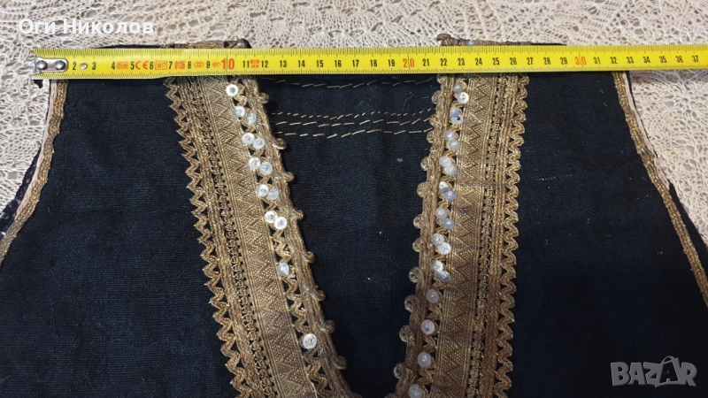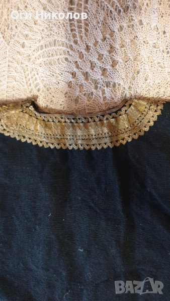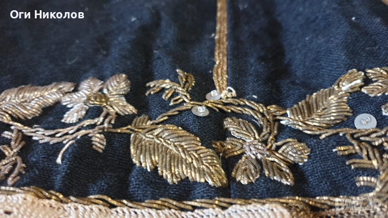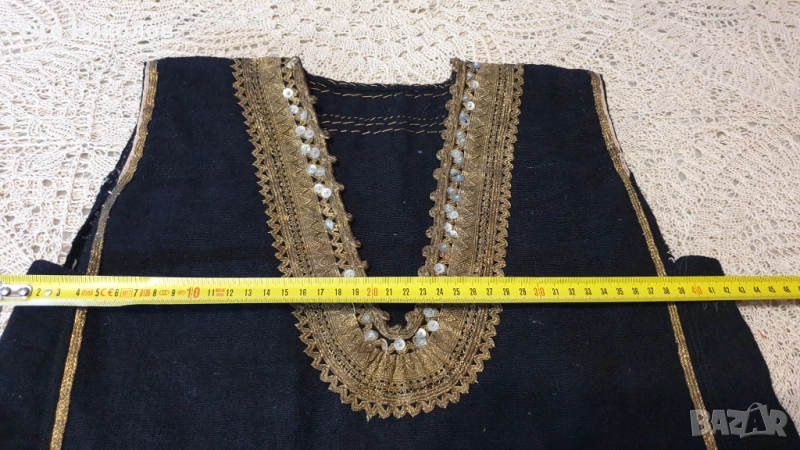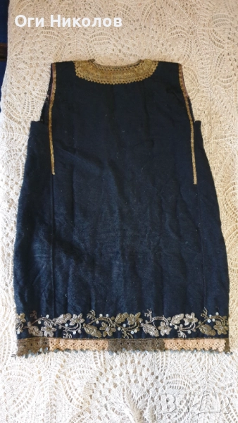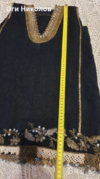 Автентичен вълнен литак.Отлично запазен,без забележки.Богато везан със златна сърма,сърмена дантела и релефни флорални мотиви от златна сърма.Дължина - 70 см.Рамене - 33 см. Под мишниците - 43 см.