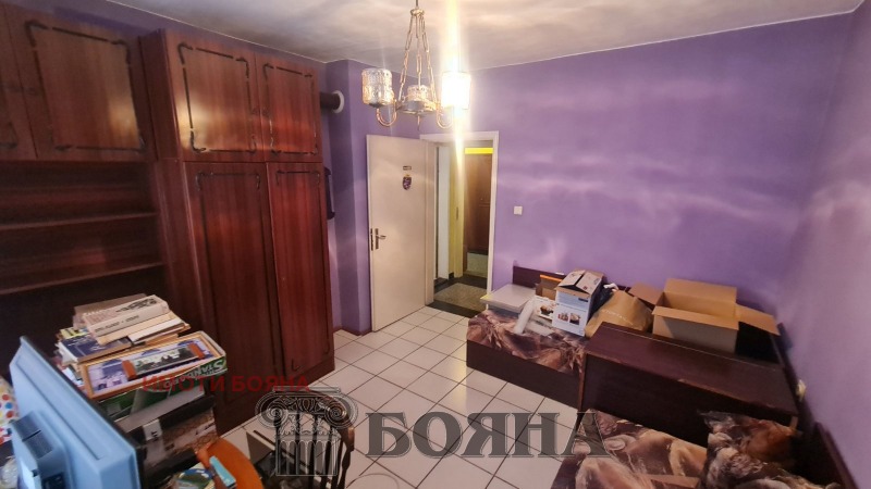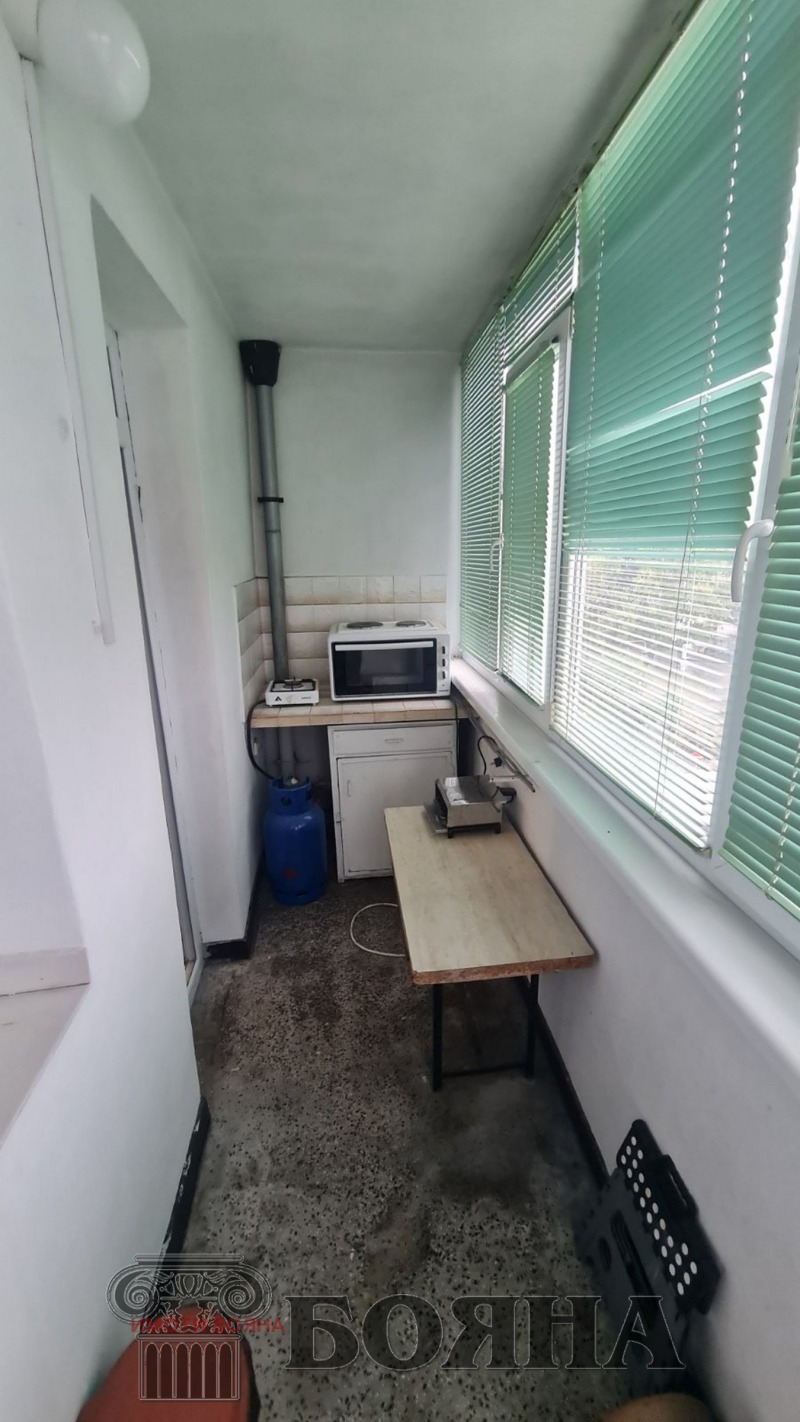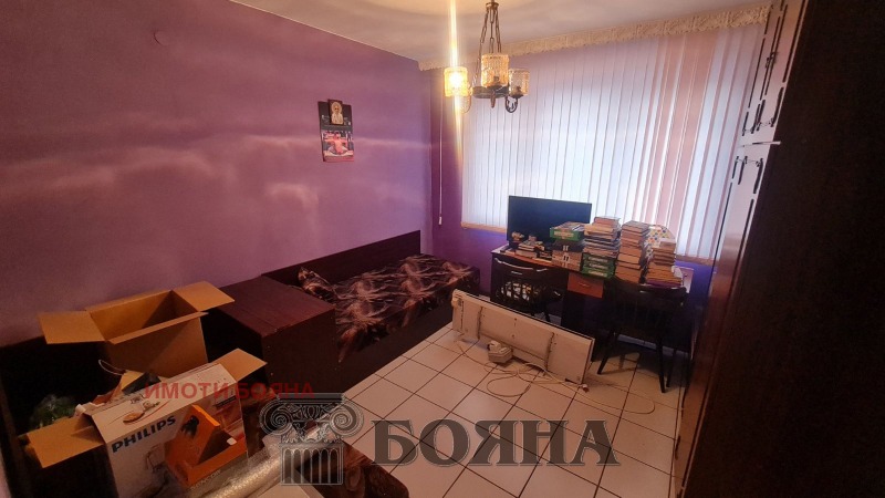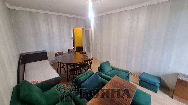 Имоти 'Бояна' предлага за продажба просторен 3-стаен апартамент в район Широк Център, в близост до уч-ще Ангел Кънчев. Апартаментът е среден, с изложение изток-запад и е на 4ти етаж в монолитна сграда с асансьор. Разпределението на стаите е следното- трапезария с кухненска част с излаз на частично остъклена преградена тераса, всекидневна с открита тераса, две спални, едната с излаз на остъклена тераса, баня и тоалетна отделно, широк килер, коридор. Жилището е с частични подобрения- сменена е ПВЦ дограмата на всички прозорци, включително и на терасите, подовата настилка в стаите е гранитогрес, а в кухнята и хола- ламинат. Има възможност за присъединяване на дневната към кухнята, усвояване на терасата и килера за придобиване на съвременния стил разпределение и обособяване на просторна всекидневна с кухня и трапезария.