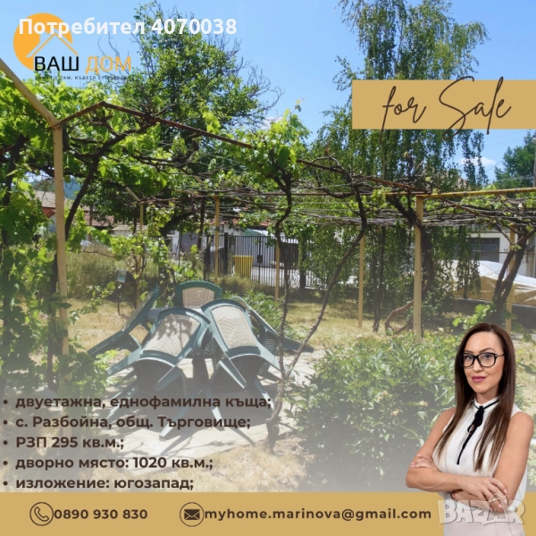Село Разбойна се намира на 3 км. от гр. Търговище, а къщата е разположена на тиха и спокойна улица с отличен целогодишен достъп, в близост до магазини и спирка на градски транспорт.