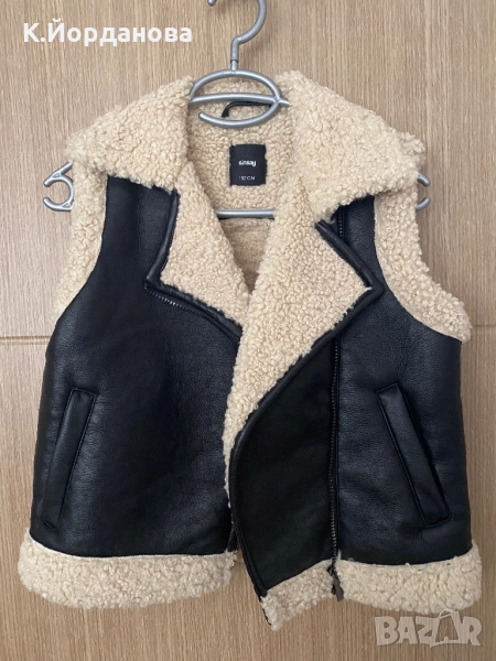 Черен кожен елек, чисто нов, с пух, купуван е от детската секция размер 152 см, отговаря на XS.