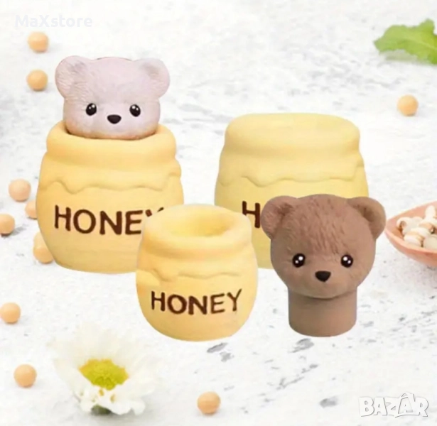 3D плюшено мече в гърне буркан с мед Силиконов молд форма → Обява 51994973