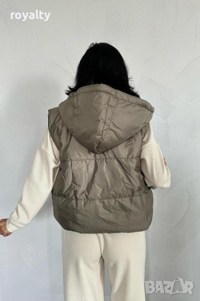 Дамски елек с качулка цвят каки → Обява 51995449