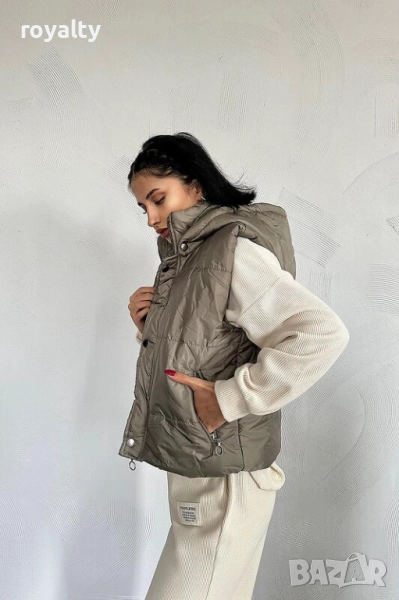Дамски елек с качулка цвят каки, снимка 1 - Елеци - 51995449 Дамски елек с качулка цвят каки, снимка 2 - Елеци - 51995449 Дамски елек с качулка цвят каки, снимка 3 - Елеци - 51995449 1/3