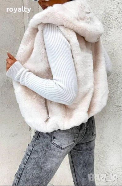 С нежния си екрю цвят и пухкава текстура, той добавя една доза лукс към всяка ежедневна облекло. Лекотата на материала гарантира свобода на движението, докато структурата му осигурява необходимата топлина през студените месеци. Практичните странични джобове са идеални за съхранение на лични вещи, а високата яка обещава допълнителна защита от вятъра.
