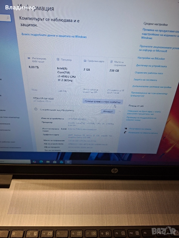 Hp ProBook 470 G2-i7 4510u/8гб/250гб ссд/R5 M255-2гб → Обява 51995763