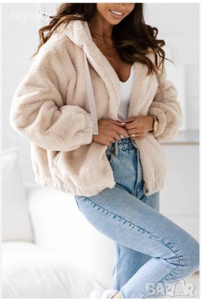 Бежово пухкаво дамско късо яке → Обява 51995800