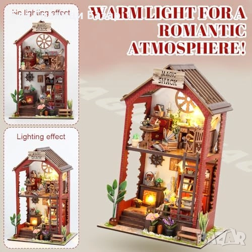 Дървен комплект за миниатюрна къща с LED светлини и реалистични мебели