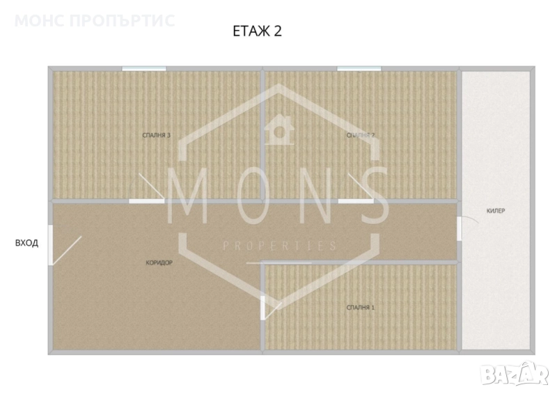 -Втори етаж – Коридор, две спални, килер и голям балкон.