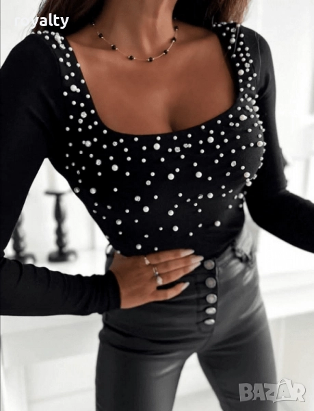 Дамска черна блуза с перли, снимка 1 - Блузи с дълъг ръкав и пуловери - 51997146 Дамска черна блуза с перли, снимка 2 - Блузи с дълъг ръкав и пуловери - 51997146 Дамска черна блуза с перли, снимка 3 - Блузи с дълъг ръкав и пуловери - 51997146 1/3