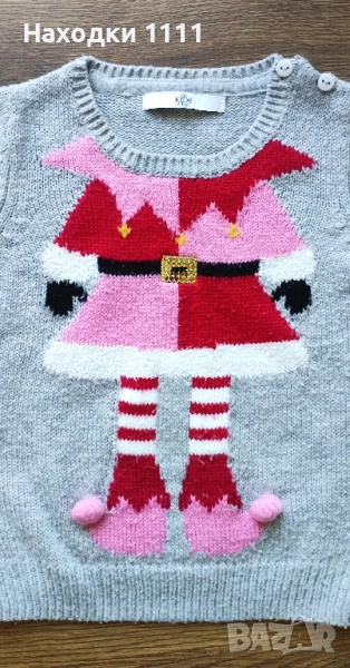 Много сладко пуловерче с коледен мотив за малка госпожица на престижния британски бранд Marks & Spencer. Интересен мотив на джудженце отпред.